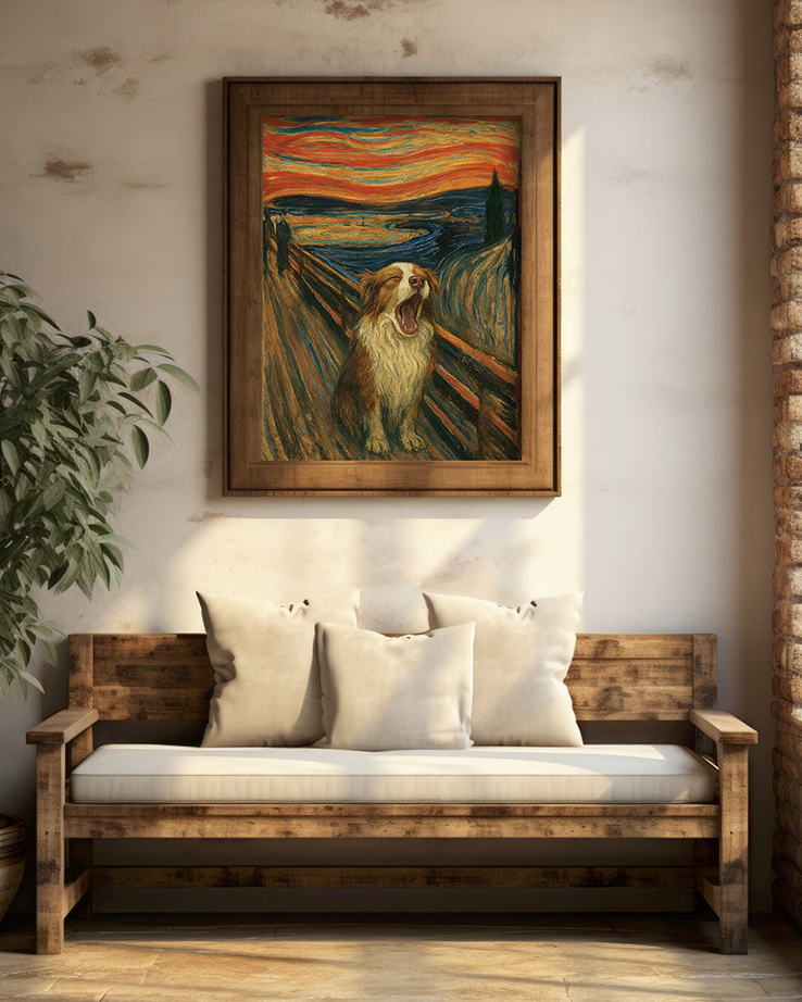 Le Bâillement, inspiré de l’œuvre de Munch Le Cri, explore la douceur du quotidien avec une touche de tendresse silencieuse. Réalisée à la main en peinture à l’huile sur toile, cette œuvre propose un geste pictural libre, presque instinctif, qui laisse apparaître des formes fluides et organiques. Certains pigments ont été mêlés à de la terre de Toscane, intégrée directement à la matière picturale.